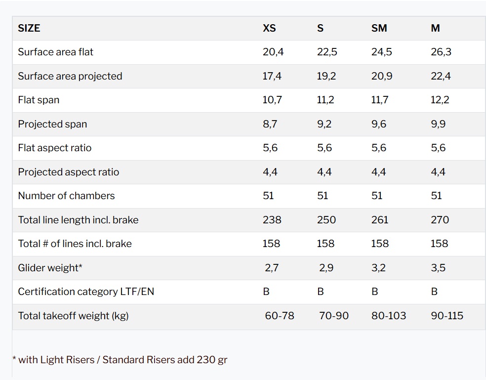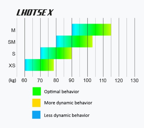 XS bedeninden (ağırlık aralığı: 60-78 kg) M bedenine (90-110 kg) kadar, LHOTSE X’in dört standart bedeni (XS, S, SM, M) mümkün olan en geniş aralığı kapsar. Kanadı orta aralıkta yüklemenizi öneririz. Genel bir kural olarak, kanat yüklemesi ne kadar yüksekse, uçuş davranışı o kadar dinamik olur. Emin değilseniz, iki boyutu da deneme uçuşu yapıp, içgüdülerinize göre hangi boyutun daha rahat olduğunu sormanız faydalı olabilir. Bilmeniz gerekenler: LHOTSE X, Standart Kolonlar veya isteğe bağlı olarak Hafif Kolonlar ile mevcuttur. Standart Kolonlar, Hafif Kolonlarda 230 gr daha ağırdır. Hangisini tercih edeceğiniz size kalmış.