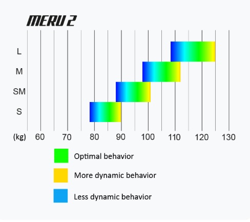 Böylece 78–125 kg aralığını kapsayan dört seri boyut (S, SM, M, L) ile önceye göre daha geniş bir aralık sağlanıyor ve dünyanın dört bir yanından daha fazla pilot MERU 2’nin keyfini çıkarabiliyor.