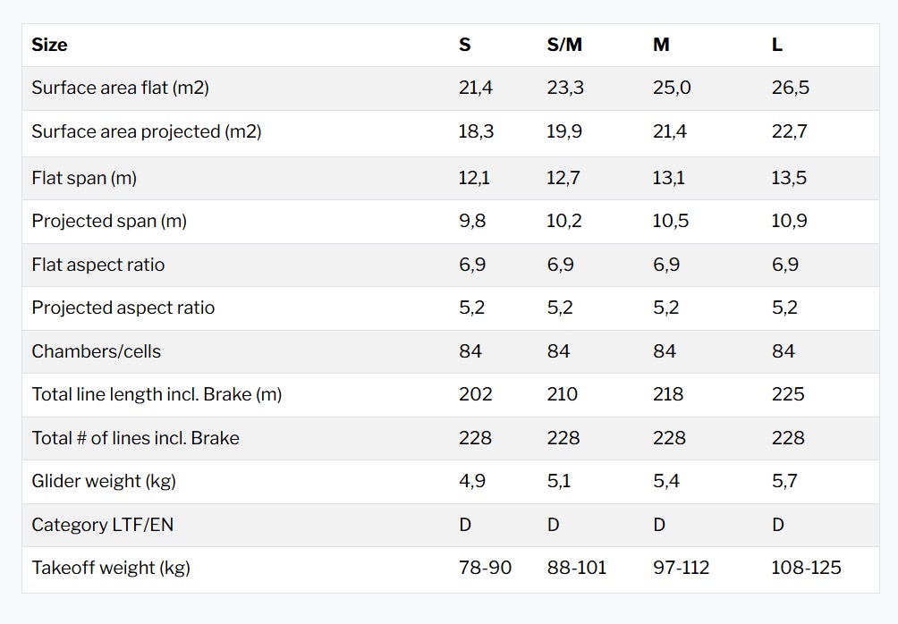 Sonuç: Uçuş karakteri, 2-liner bir kanadın tüm avantajlarını sunarken EN/LTF D sınıfına karşılık gelmektedir.